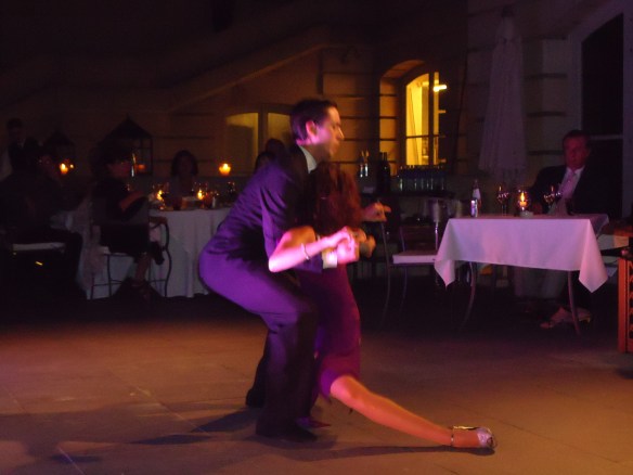 I loved, loved, loved the tango show. We had front row seats. They performed a variety of group dances and individual dances. There were multiple costume changes and each dance had a specific theme. I did learn that the women dancers wear super-high heels but their heels never touch the ground. A tip that I will try in my Zumba classes. Ha! The dancers were all beautiful, graceful, and wonderful. They all had the typical dancer-type bodies. Super-thin and toned. I couldn’t help but wonder if they were envious of our calorie-laden, rich entrées like we were envious of their fat-free bodies. I mean, we were chowing down on foie gras, caviar, beef with truffle butter and ice creams while these lithe dancers were dancing around us.