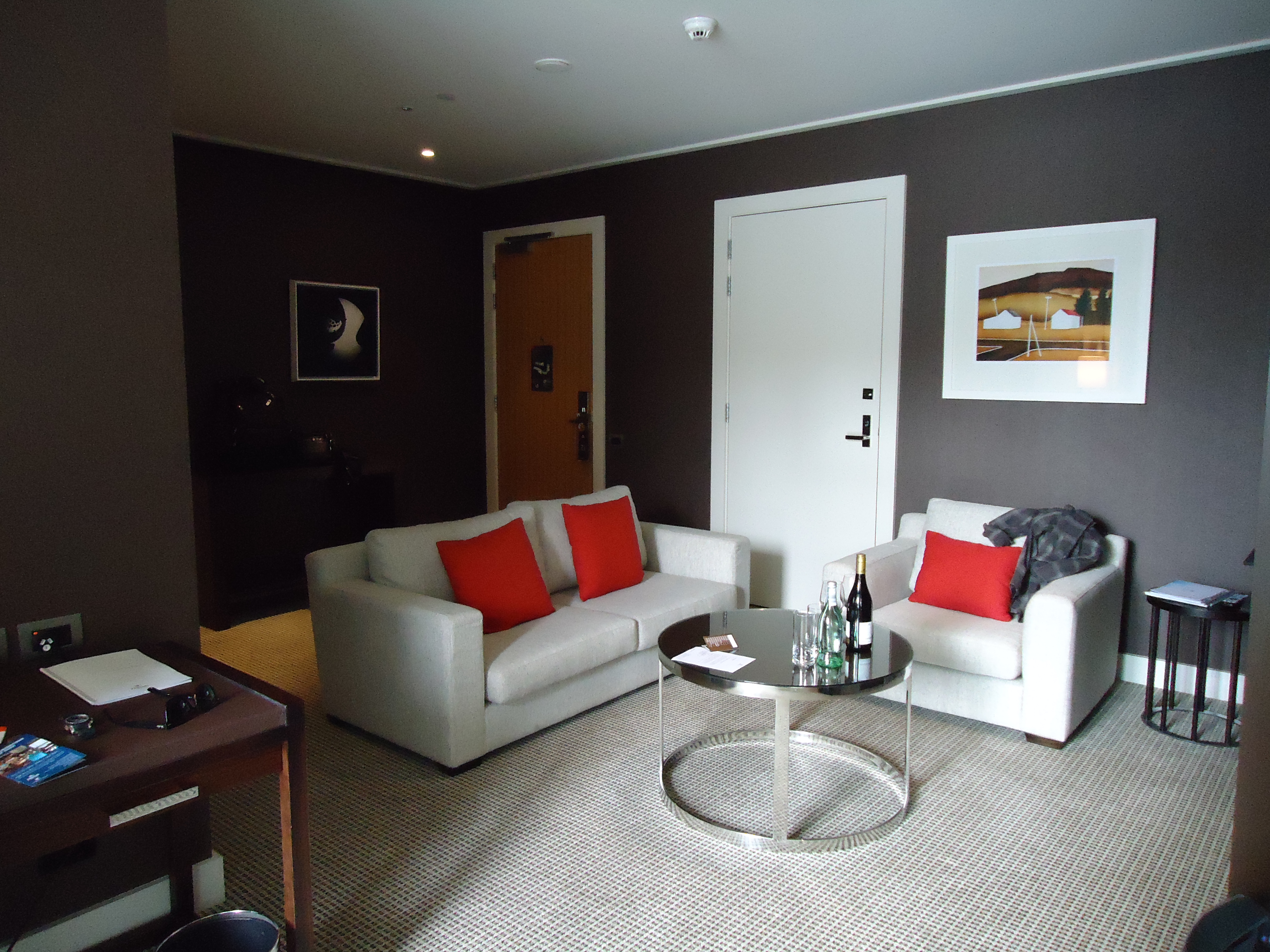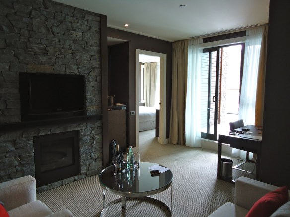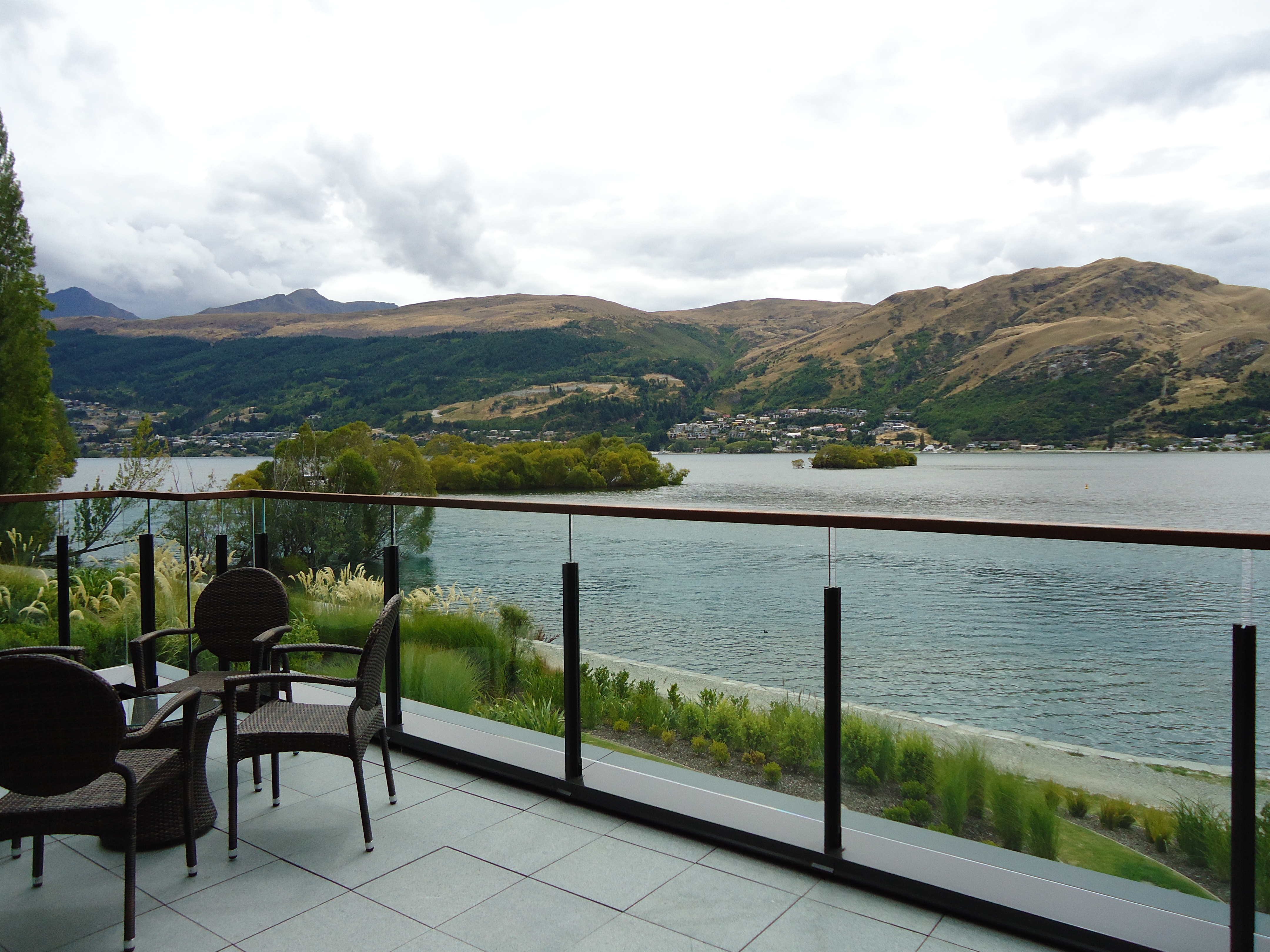 Everything that I complained about the Hilton was redeemed at the Queenstown Hilton. We got the Diamond upgrade to a suite and, right off the bat, the service was extraordinary. The front desk manager escorted us to our room and gave us a tour of the hotel on the way. Our room is large with a separate living and sleeping space (and after constantly being together this long, a little space is a good thing…remember, Chris and I are used to having some time apart each week). But, the icing on the cake is the spectacular view from our large balcony. This time we have furniture, unlike the Hilton Auckland.