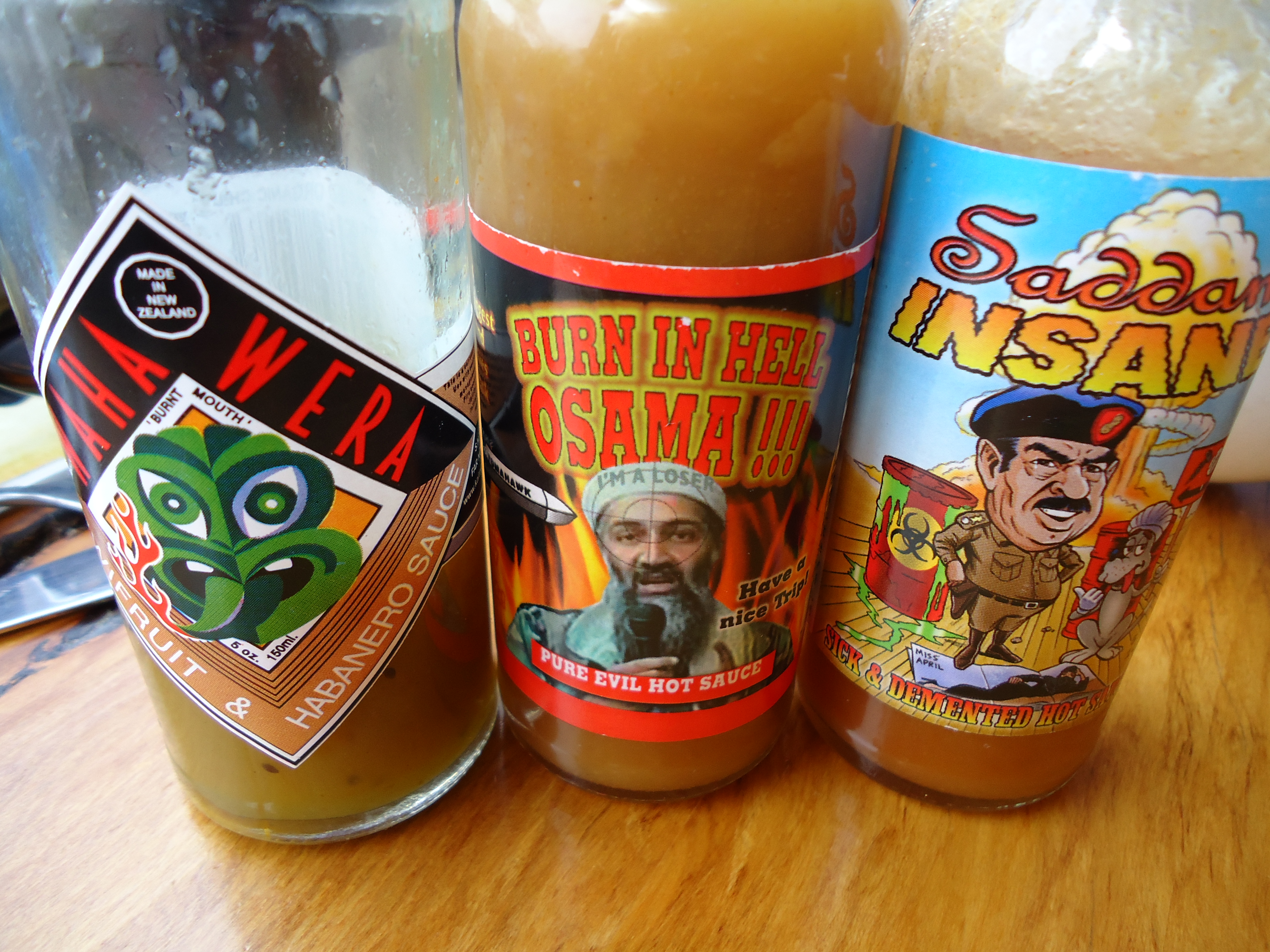 We tried a lot of different hot sauces. I really liked the Osama one...