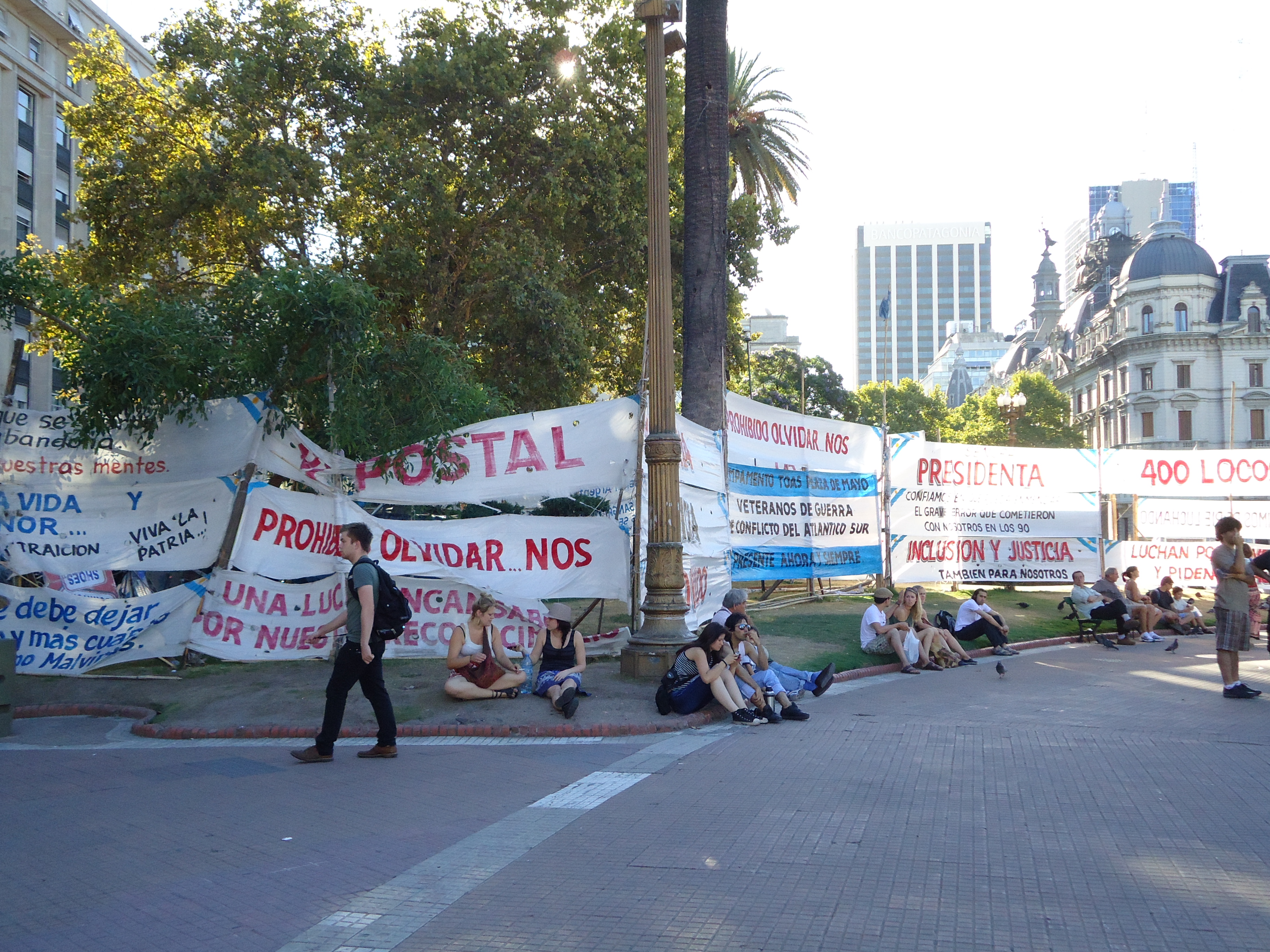 The Mothers of the Plaza de Mayo weren’t marching when we were there. But, there were many protest signs hanging in the plaza.